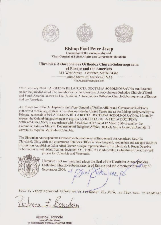 Також своїм актом від 18 вересня 2005 року утворення окремої, самостійної структури УАПЦ для Колумбії та всієї Південної Америки затвердив митрополит Михаїл (Явчак-Чампіон) під час відвідин м. Манісалес..